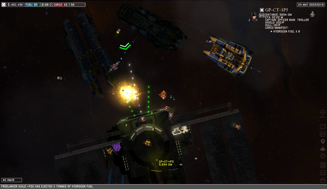 Сражения и перемещения между станциями происходят в реальном времени. При полете учитываются излучение, гравитация небесных тел, броня космолета, прочность костюма, запас топлива и энергия для дронов. Бои ведутся с видом сверху, а при выходе из транспорта камера переключается на боковой ракурс.