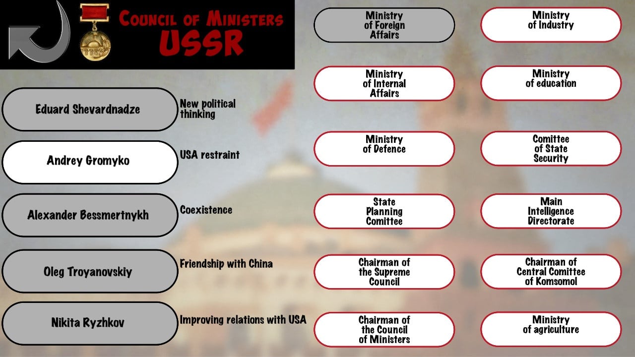 - Возможность завершить Перестройку и реализовать смелые идеи, например, построить полулегендарный ОГАС.