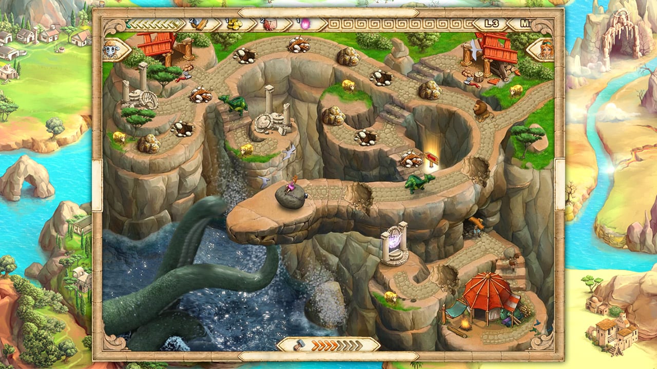Геймплей выполнен в стиле "time-management". Вам предстоит собирать ресурсы на каждом уровне: древесину, золотые монеты, пищу, камень и мощь богов. Последняя позволяет героям усиливать свои сверхспособности, готовясь к подвигам – например, к борьбе с гидрой или львом. Мощь богов можно получить на алтарях, а древесину – в лесопилках, остальные ресурсы scattered по карте.