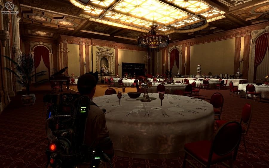 Каждое вооружение эффективно против определенных типов врагов, что добавляет разнообразия в геймплей. Поверженные существа попадают в ловушки – важный элемент экипировки героев. Персонажа можно развивать и улучшать снаряжение, используя деньги, заработанные на заданиях. Доступны апгрейды для ранцев, включая охлаждение, протонный луч, ловушки и другие устройства. Кроме того, средства тратятся на штрафы за небрежность во время поимки призраков. Ghostbusters The Video Game ориентирован на поклонников дилогии. Это проявляется в сборе артефактов, диалогах и действиях персонажей, содержащих отсылки к фильмам, которые могут быть не понятны новым игрокам.