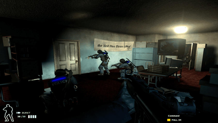 Система очков в игре оценивает каждое ваше решение. Ошибки могут стоить жизни вашим бойцам или заложникам, а необдуманные шаги приведут к судебным последствиям. Чтобы пройти уровень, нужно набрать определенное количество очков, которое варьируется в зависимости от сложности. В арсенале доступно множество огнестрельного оружия, идеально подходящего для боев в замкнутых пространствах. Особое внимание уделено несмертельному арсеналу: электрошокеры, пейнтбольные ружья и газовые баллончики. Главные задачи — восстановить справедливость, различить заложников и террористов, освободить пленников, собрать улики и, конечно, выжить. В вашем распоряжении команда из четырех офицеров, чьи камеры позволяют изучать обстановку и давать точные команды каждому из них.