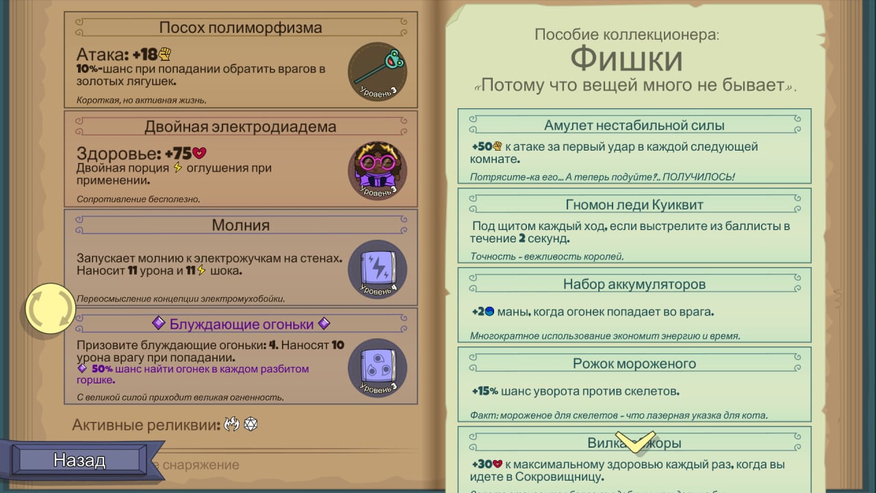 - Выбор из разных персонажей, множество предметов экипировки и фишек.