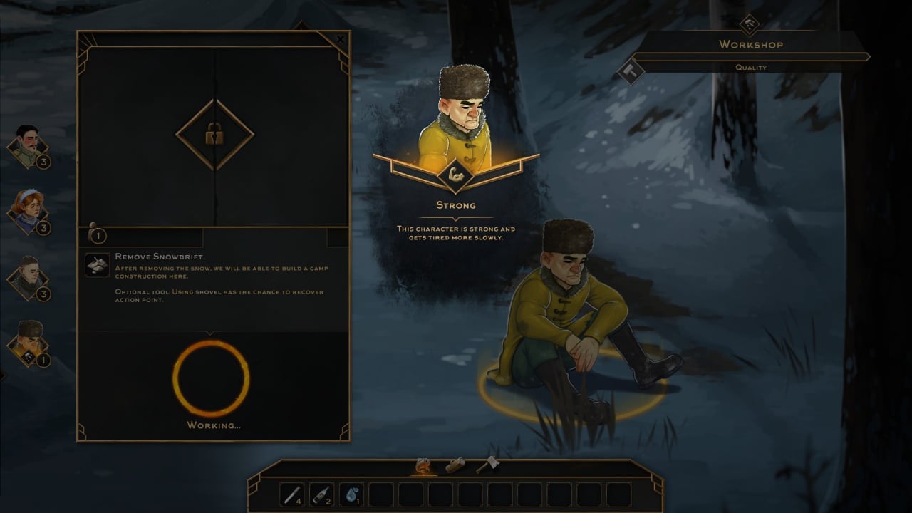 - выходить на вылазки для сбора ресурсов и охоты, исследовать местность, выполнять дополнительные квесты;