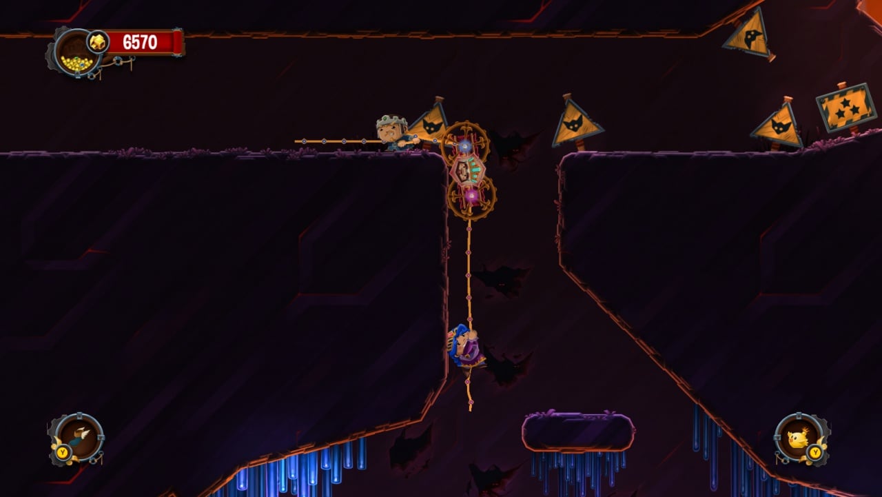 Chariot – кооперативный платформер-головоломка, заточенный на взаимодействии двух геймеров за одним компьютером. Выберите одного из двух персонажей: принцессу или её жениха. Их задача – доставить гроб с телом мёртвого короля в место захоронения, проходя через 5 уникальных этапов. На протяжении всего путешествия с вами будет призрак короля, который щедро раздаёт юмористические комментарии и подсказки, иногда забывая о своём статусе духа.