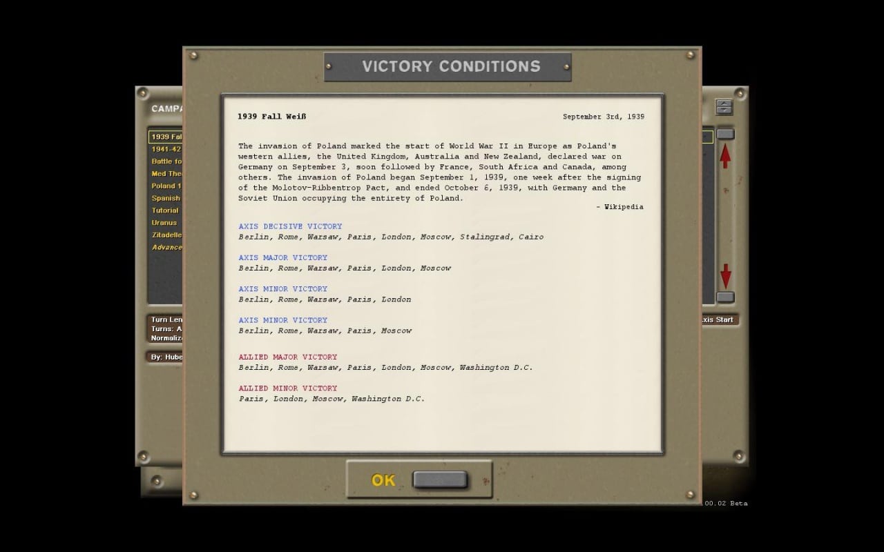 Одно из главных достоинств Strategic Command 2: Blitzkrieg – это масштабность и глобальность событий. Разработчики предоставили широкий выбор: пользователь может взять на себя командование одной из более чем шестидесяти стран. В центре внимания, безусловно, противостояние антигитлеровской коалиции и держав Оси. Можно вступить в ряды любой из сторон и добиться поставленных целей, например, изменить ход войны, играя за немцев.