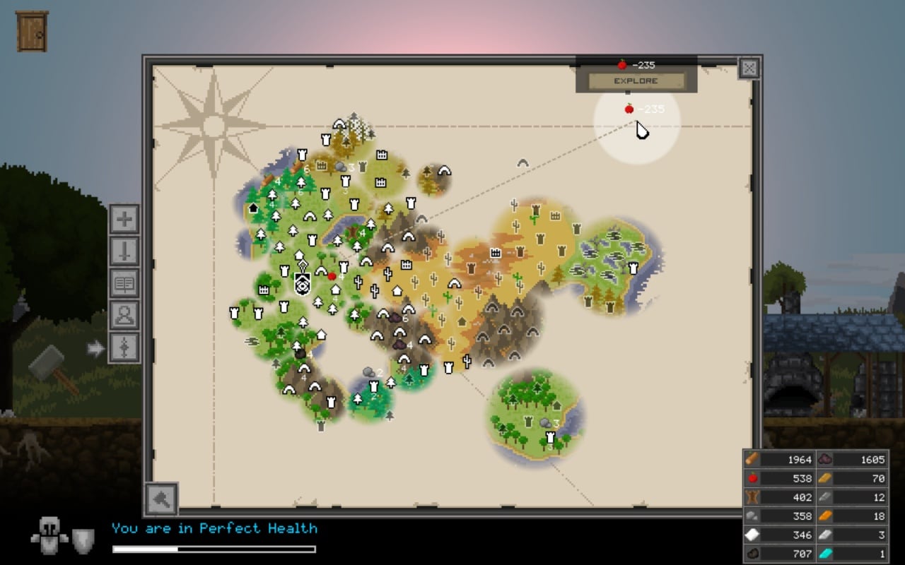 Игровой процесс делится на три ключевых компонента: исследование, боевая система и управление деревней. Исследование новых территорий происходит автоматически и требует лишь еды. Разнообразие локаций и событий впечатляет. Мы можем наткнуться на стаю диких зверей, обнаружить новый квест или найти тайник.