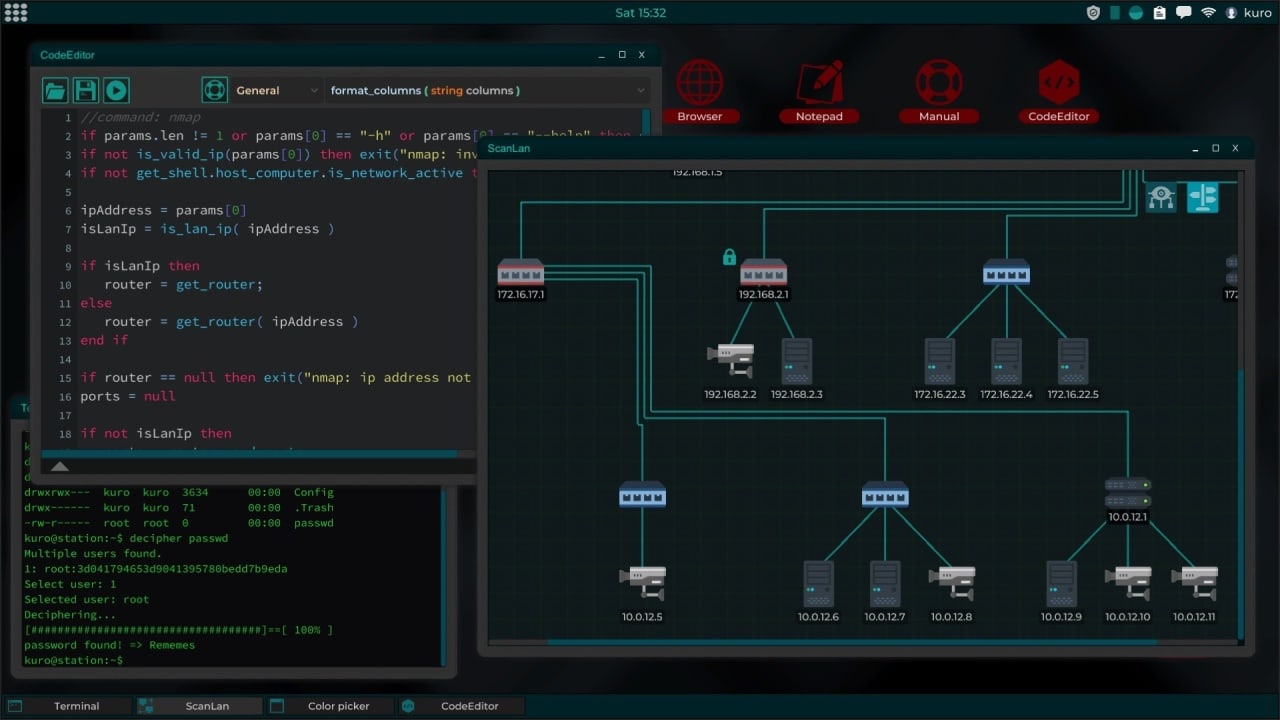 Многопользовательский тайтл Grey Hack погружает в мир хакерских интриг. Геймер получает полную свободу маневра в процедурно генерирующейся сети. Начальные инструменты — File Explorer, Text Editor и Terminal — открывают двери в киберпространство. С ростом хакерских навыков появляются новые утилиты и возможности.