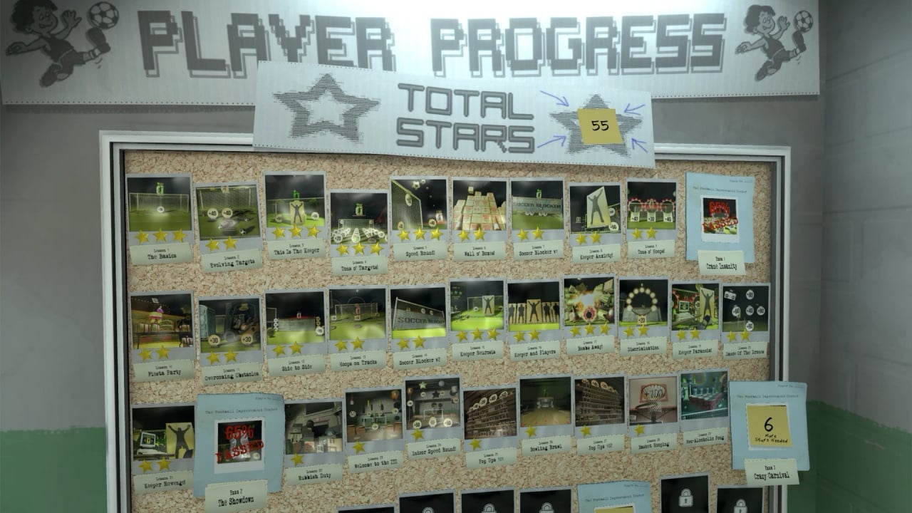 В проекте представлено более 40 увлекательных уровней. Доступен сетевой режим на 4 участника, позволяющий мериться силами с другими геймерами. В процессе прохождения Headmaster открываются 4 тренировочные зоны, включая улучшенную версию стадиона. Первоначально игроки тренируются в складских помещениях, зарабатывая очки для доступа к полноценному стадиону.