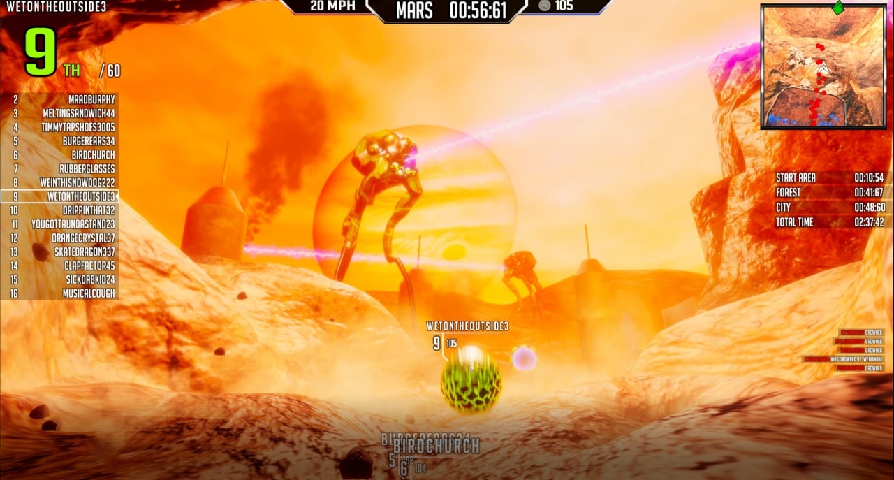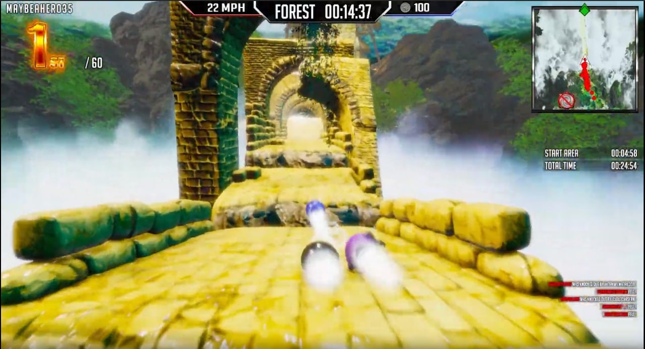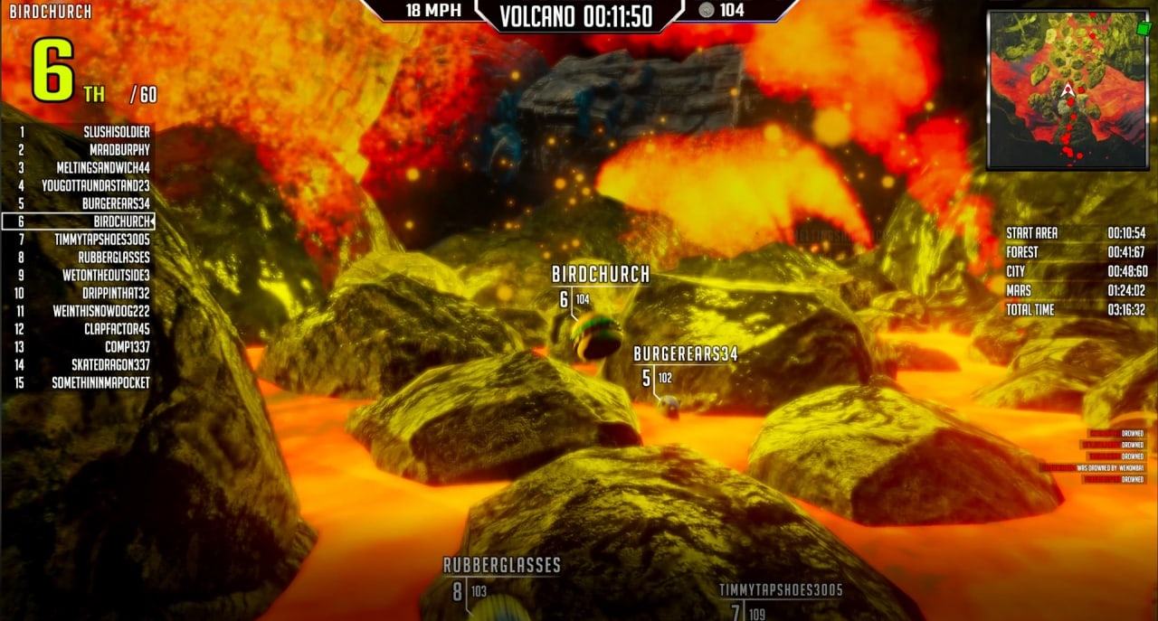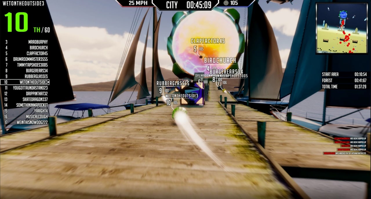Геймеры управляют необычным "транспортом": мячами, уточками, грибами, бургерами, кубами и другими забавными объектами. В процессе заезда доступны двойные прыжки, возможность перепрыгивать платформы, ездить по стенам и даже самоуничтожаться. Преодолевая препятствия, необходимо добраться до финиша быстрее соперников. Можно толкаться и сбивать оппонентов с толку, чтобы обойти их.