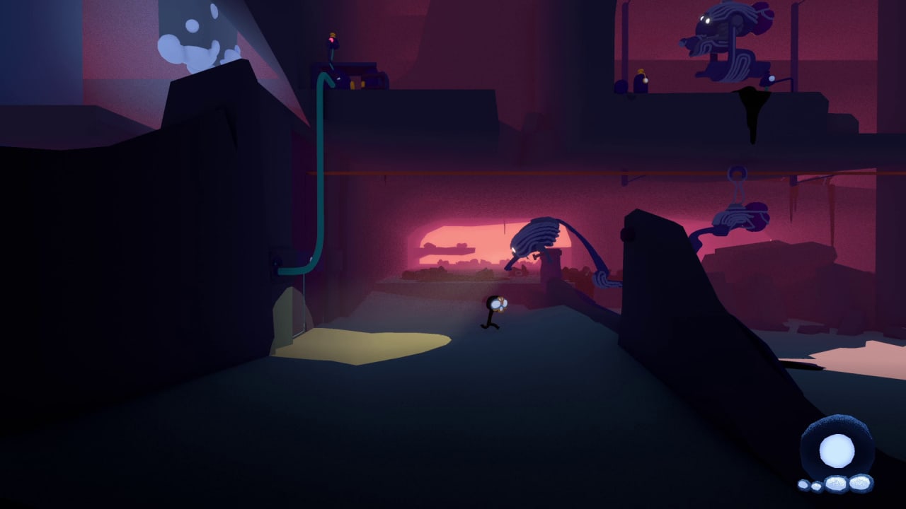 Airhead выделяется среди метроидваний тем, что игрок управляет сразу двумя существами. Сюжет раскрывается через немые катсцены. Тело падает в пропасть и оказывается в мрачных пещерах. Загадочный гуманоид находит умирающую голову, которая не простая, а воздушная. Он объединяется с ней и становится Воздухоголовым.