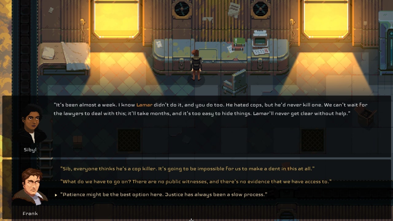 - Стиль – пиксельная графика и атмосферная музыка создают истинный киберпанковский антураж.