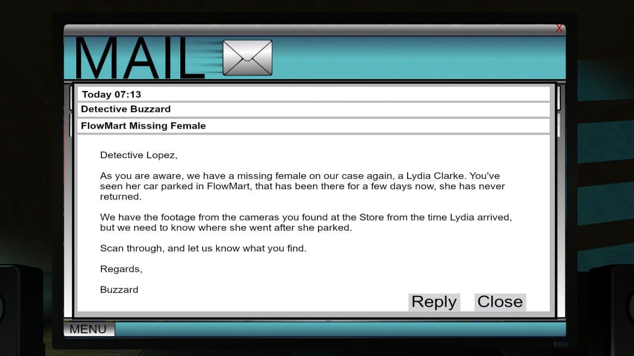 Геймплей сосредоточен на ПК детектива. Здесь находятся электронные письма и ПО CAMEO — приложение для мониторинга, оценки и наблюдения. Компьютер также предоставляет доступ к веб-камере, видеоиграм и интернет-браузеру. Персонажу предстоит побывать на различных местах преступлений: магазинах, бензоколонках, в отелях и на автостоянках. Геймеру нужно находить следы шин, отпечатки пальцев и другие улики, которые помогут установить личность злодея. Раскрывать предстоит не только грабежи и поджоги, но и более серьезные преступления, включая убийства.