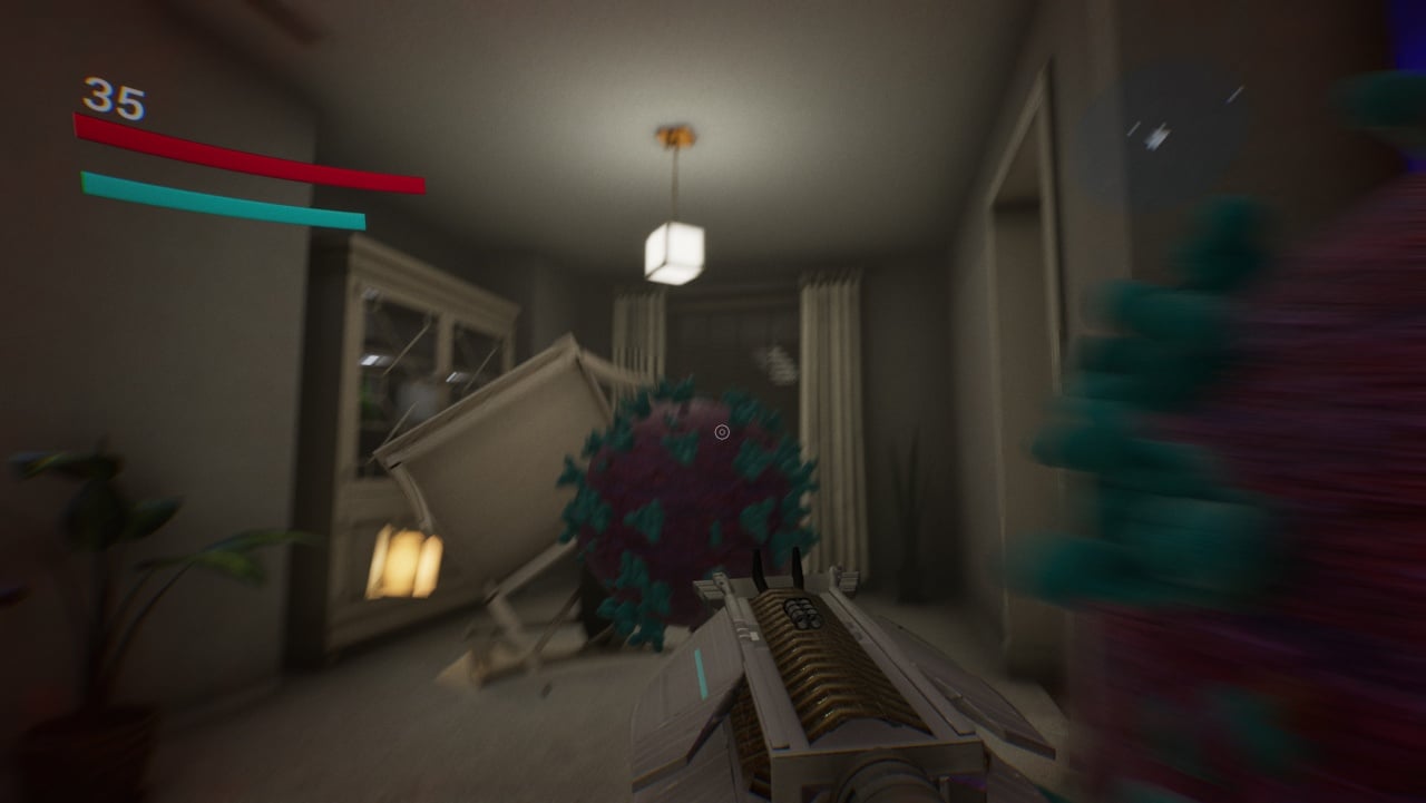 Враги — это огромные молекулы вируса, заполонившие округу и врывающиеся в дома. Шары коронавируса вечно пытаются окружить пользователя, создавая смертельные ловушки. Чтобы выжить, нужно постоянно двигаться и использовать взрывающиеся устройства для уничтожения нескольких оппонентов одновременно. Шары отличаются цветом и скоростью передвижения.