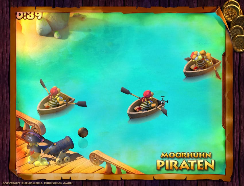 "Морхухн Пираты" — это аркадное приключение о куропатках, которые, надев пиратские банданы, становятся корсарами на Карибах. Moorhuhn Pirates предлагает исследовать небольшую, но насыщенную активностями территорию. Морхухны способны летать, плавать на лодках и мчаться с бешеной скоростью по экрану.