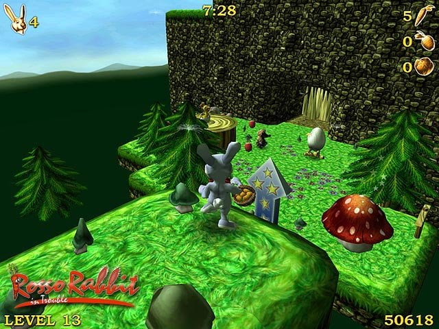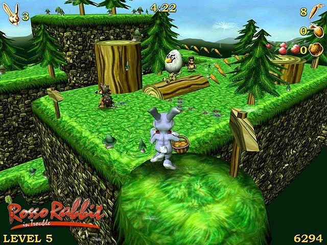 Доступны двойные прыжки при повторном нажатии кнопки действия. Все уровни линейны, но иногда предлагают альтернативные пути: один будет сложнее, другой — проще. На сложных развилках геймер получит дополнительные бонусы. На уровнях встречаются разные препятствия: шипы, выступающие из земли, движущиеся платформы и таймер. Каждый левел имеет ограниченное время для успешного завершения. Враги разнообразны: гигантские морковки, птицы, ежики, пасхальные яйца и другие. Бонусы представлены в виде моркови, капусты и свеклы. Собрав 50, 30 или 10 штук, герой получит дополнительную жизнь. Для хардкорных пользователей предусмотрен повышенный уровень сложности.