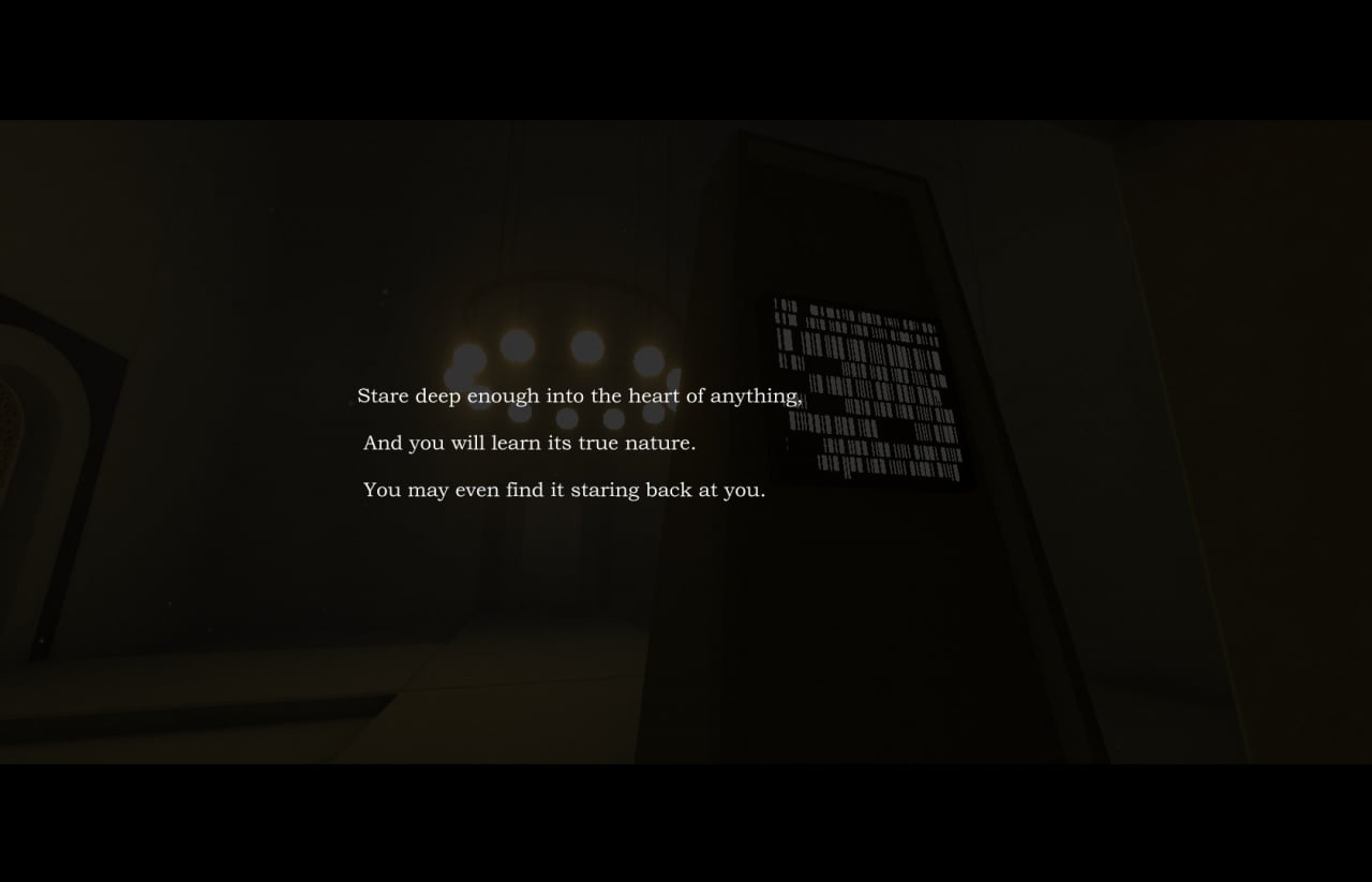 Исследуя локации, герой откроет свое истинное предназначение. Освещение многих мест поражает воображение, а в сочетании с глубоким и сюрреалистичным звуковым сопровождением создается загадочная атмосфера исследования. Каждая новая головоломка — часть ритуала. В зависимости от стиля прохождения, в конце тайтла будет доступна одна из нескольких концовок.