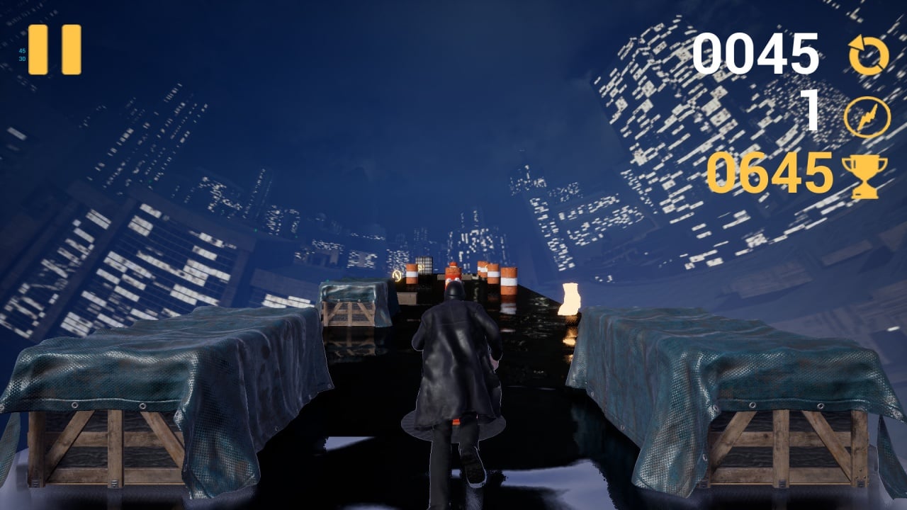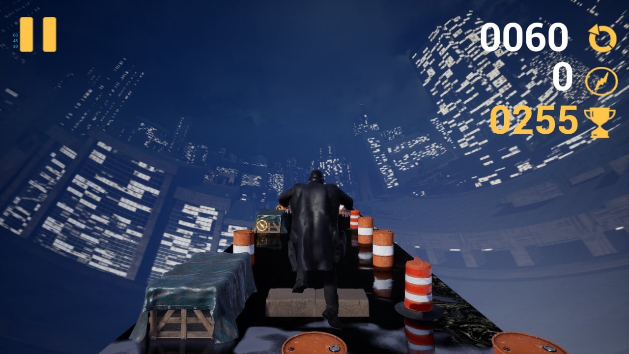 По локации разбросаны бонусы, которые важно собирать для достижения наилучшего результата. В правом углу отображается счет за преодоленные ловушки и количество собранных монет. Пользователь может в любой момент ознакомиться с таблицей лидеров и лучшими временами забегов. Также доступны личные рекорды и общая статистика игры.
