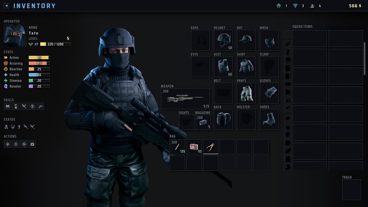 Проект радует передовой физической моделью, позволяющей создавать простреливаемые объекты и реалистично отслеживать полет пули. Геймер может наблюдать за каждым выстрелом и видеть, куда попал враг. Вне полей битв пользователь перемещается по глобальной карте, выбирая членов отряда для предстоящих операций, прокачивая каждого персонажа и снаряжая войска из 40 видов огнестрельного оружия. Миссии можно набирать в специальном хабе.