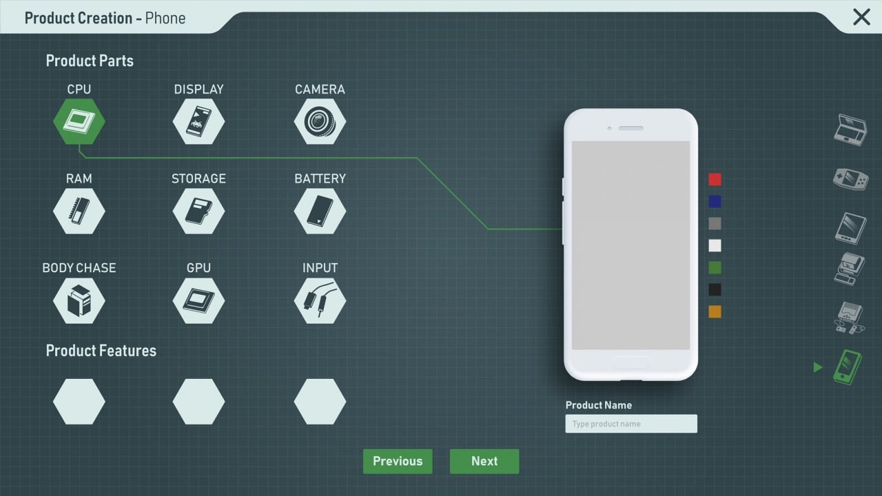 В Tech Corp. вы полностью погружаетесь в создание продукта. Разрабатывайте дизайн, настраивайте аппаратные компоненты, задавайте характеристики и параметры устройств. Выбирайте размеры дисплея, объем жесткого диска и многое другое. Затем поручайте сотрудникам собрать технику и подготовить ее к выпуску. Рассчитывайте себестоимость и рыночную цену в зависимости от программного обеспечения.