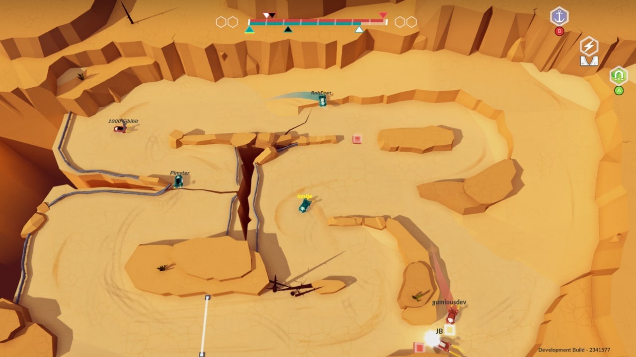 От каждой команды участвует один гонщик, стремящийся первым пересечь финишную черту. Остальные двое должны всеми способами мешать соперникам: устанавливайте шлагбаумы, поднимайте и опускайте платформы, подрезайте врагов, сбрасывайте их со скал и так далее. Только совместные усилия приведут к победе!
