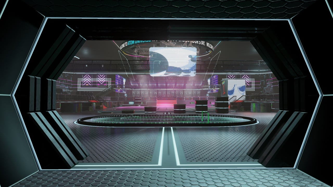 Создатели Atom Universe черпали вдохновение из Second Life. Участники исследуют центральный хаб в любое время суток. Здесь можно участвовать в мини-играх: арканоид, конные бега, простенький скролл-шутер и космическая стрелялка на арене. Также доступны обычные активности: сбор шариков на время, танцы, боулинг и прыжки через кольца.