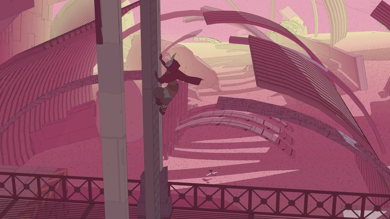 Sable – это дебютный проект независимой студии, который погружает в мир аркадного экшена с казуальным управлением и глубокой сюжетной линией, раскрываемой через визуальные элементы. Игра выделяется необычной стилистикой, где текстуры окружающего мира выполнены с минимальной детализацией, создавая эксцентричные образы. Сел-шейдинг анимация, используемая здесь, редко встречается в современной индустрии. Яркие спецэффекты и палитра, а также локации, состоящие из пустынь и редких городков среди безжизненных барханов, формируют уникальную атмосферу.
