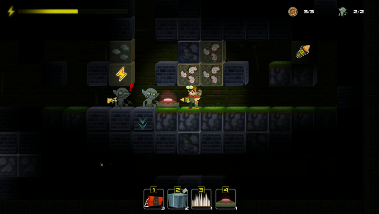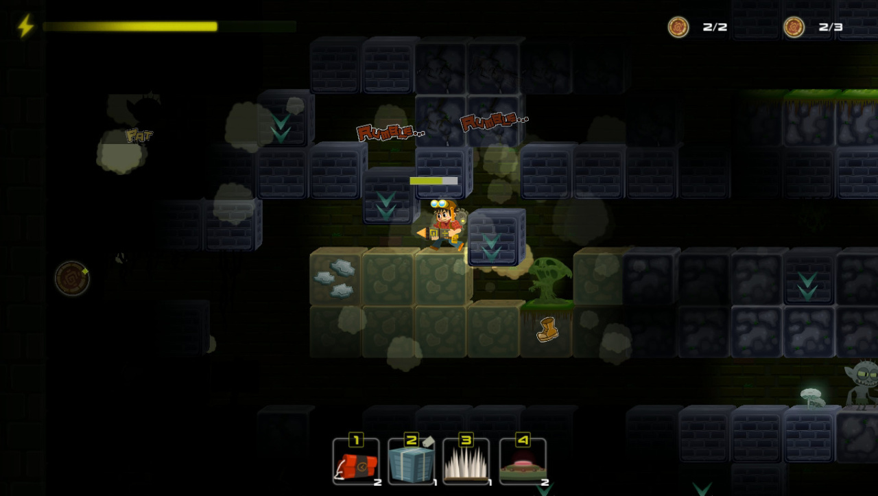 Главный герой – сапёр и искатель приключений по имени Дигсби, который исследует шахты и подземелья. В них скрыты ценные предметы, полезный лут и опасности, такие как зомби и другие монстры. Загадочная парящая голова выдает квесты для протагониста. Проект выполнен в боковом формате, пространство разделено на кубы. Некоторые из них Дигсби может разрушать с помощью шахтёрских инструментов: взрывчатки, динамита, фугасов и отбойных молотков. Прочные породы не поддаются никакому оружию, создавая непреодолимые преграды, которые нужно обходить. Любое оборудование можно использовать против агрессивных врагов, но стоит быть осторожным, чтобы не разрушить нужные кубы породы вместе с недругом.