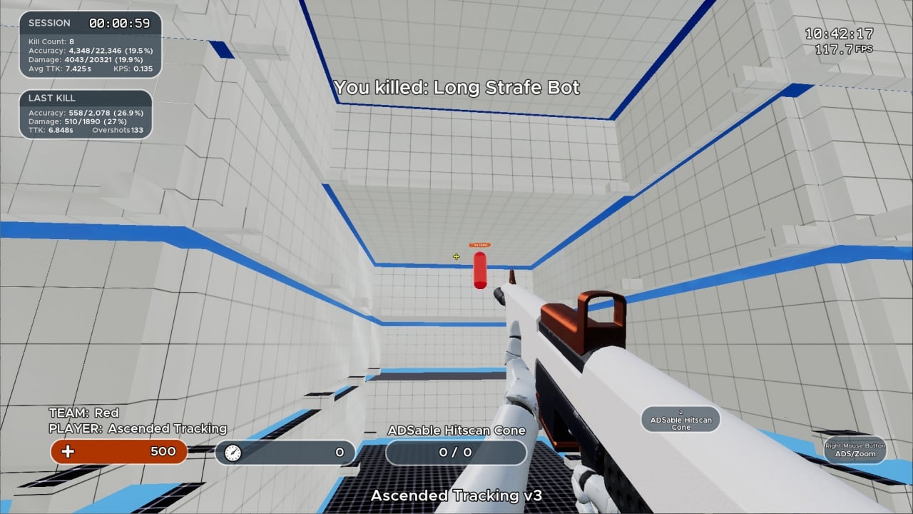 Создавайте собственное оружие, персонажей, карты и искусственный интеллект. Разработайте уникальный список воспроизведения карт и режимов для индивидуальных тренировок и делитесь им с другими пользователями. Настройте поведение ботов: пусть они уклоняются, предметы движутся, уменьшаются в размере или исчезают через полсекунды, если вы не попали по ним. На каждой карте присутствует таблица лидеров. Загружайте собственные полигоны, которые автоматически станут доступны для других геймеров. Стандартные карты включают арены, стрельбу по статичным и динамичным мишеням, прицеливание по маленьким кружочкам и бочкам. Используйте свой собственный прицел, загружая его в формате JPG или PNG. Меняйте текстуры полов, добавляйте визуальные эффекты, изменяйте размеры голов и тел врагов.