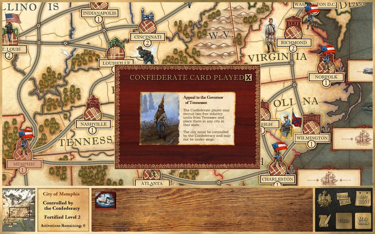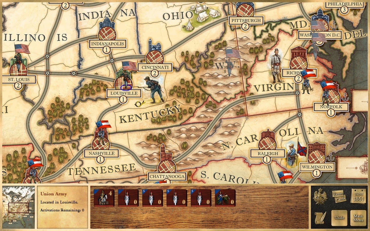- Управляйте ключевыми штатами: Миссури, Кентукки и Мэриленд.