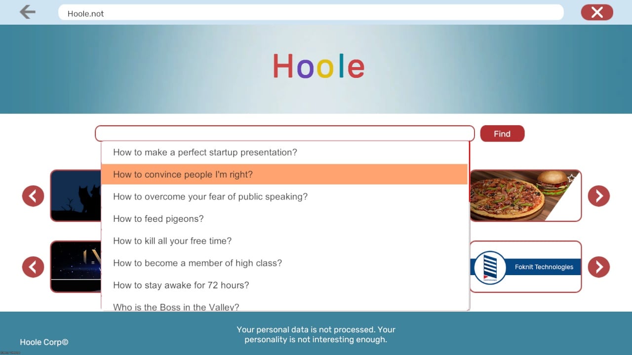 Деньги — не в счет. В кармане у вас ноль, но есть верный друг-алкоголик Ларри. У вас всего восемь дней, чтобы сдвинуться с мертвой точки. По мере продвижения по сюжету события становятся все более безумными. Startup Valley Adventure — это не драма, а черная комедия о неудачливом Кей Си Моррисе, стремящемся запустить проект Roundelay. Геймплей представляет собой визуальную новеллу от первого лица, сочетая экшен, адвенчуру, ролевые элементы и сурвайвал. Также присутствует механика кормления голубей и секция со скролл-шутером. Диалоги вариативны, что добавляет глубины. Среди мини-игр: убеждение собеседника, выбор одежды в гардеробной, создание презентаций и многое другое.Дополнительные свойства игры: