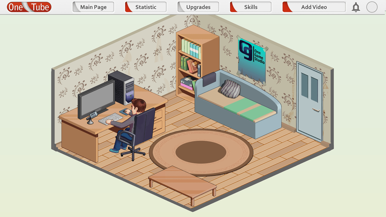 Персонаж не только развивается, но и получает улучшения для своего ПК и техники. Юзер может обновить записывающее оборудование и изменить интерьер, что влияет на качество контента. Жанр видео выбирается самостоятельно, но учитывай интеллект героя — сложно создать осмысленный блог об экономике с низким IQ. Со временем открываются все темы, а совместная работа с другими персонажами позволяет создать собственную студию.