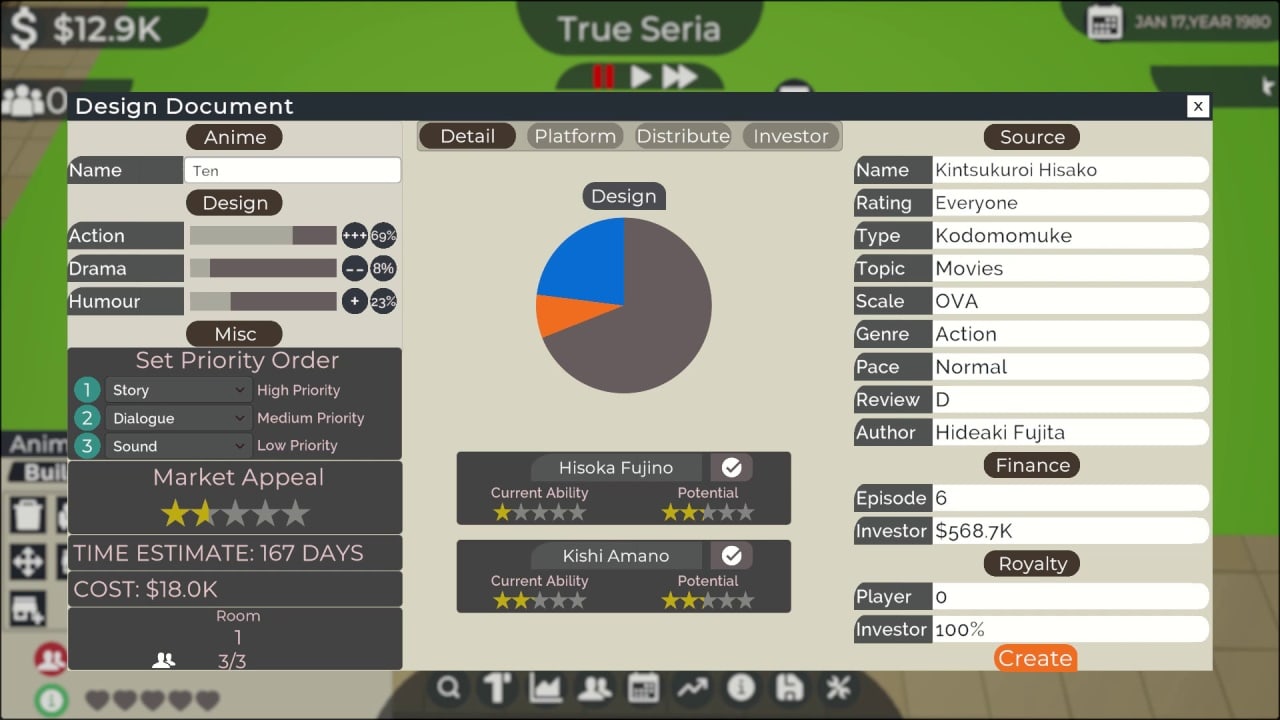 Приключение начинается в 80-х годах прошлого века. Виртуальный протеже, попадающий под контроль пользователя, создает компанию по производству аниме, стремясь стать лидером в этой сфере. В начале пути геймер располагает небольшим штатом сотрудников, что усложняет процесс создания. Первые шаги принесут доход через субконтракты с крупными фирмами, которые передают отрисовку проектов на аутсорс. Заработав финансовую подушку "на черный день", пользователь может начать разрабатывать собственную вселенную и воплотить её в мультипликационном произведении. Геймеру доступно огромное множество направлений деятельности: от выбора названия и постера до заключения договоров на показ готового продукта и многого другого.