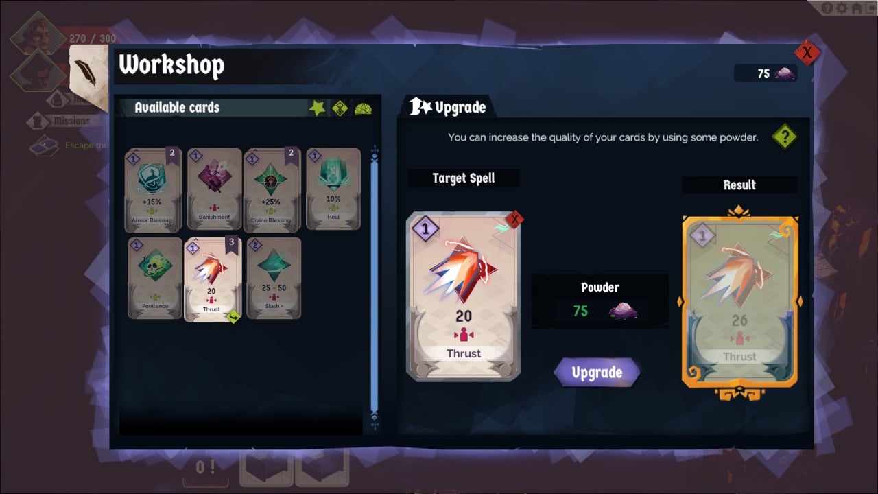 Главный герой — Сэм. Его цель — вырваться из запутанных коридоров, созданных безумцем. Воспоминания и решения персонажа не позволяют ему полностью погрузиться во Тьму. Ваша колода определит стиль игры и способ исследования катакомб. Она также влияет на тактику сражений. Выбирайте бойцов, комбинируйте их способности и сокрушайте оппонентов.
