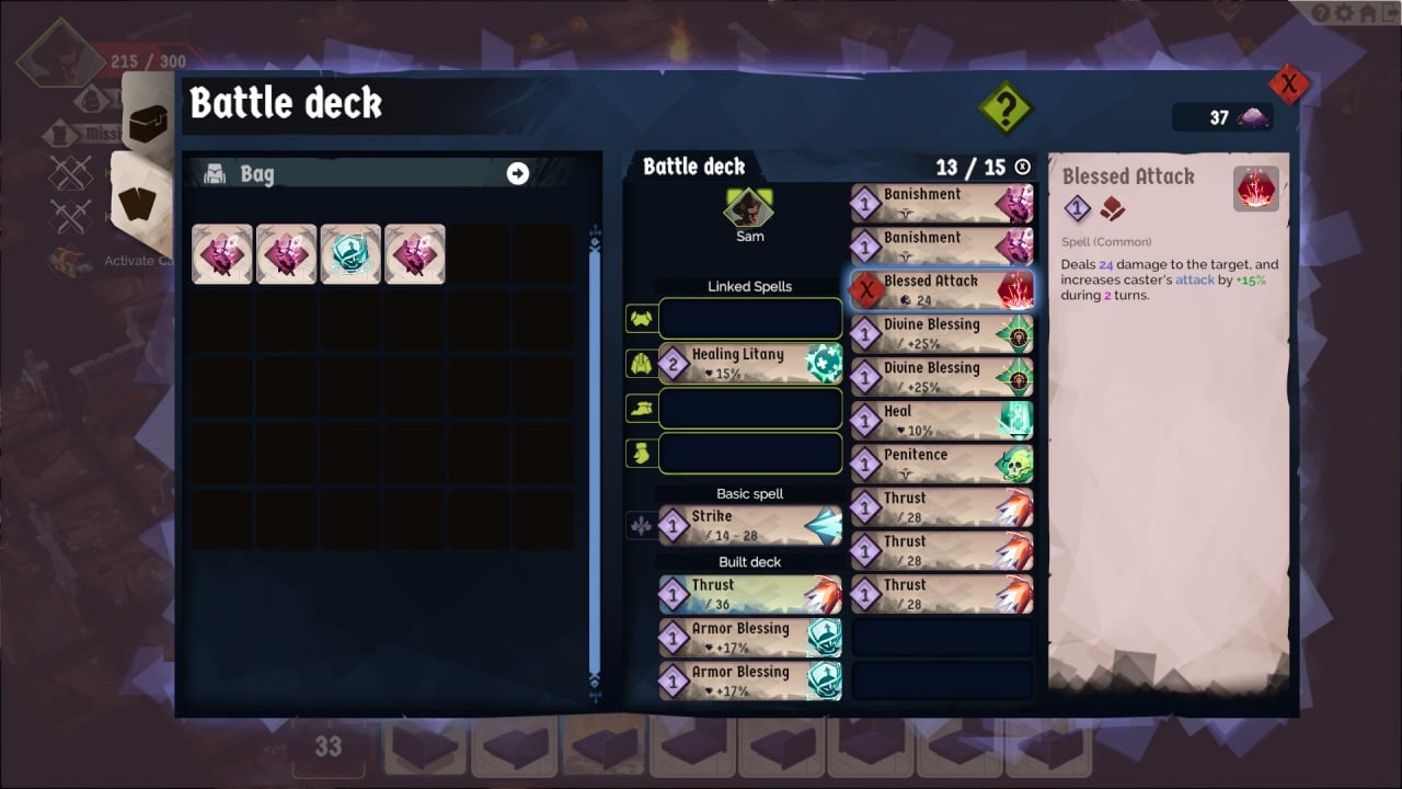 Битвы проходят на аренах, где используются оружие и заклинания, изображенные на картах. Сложность врагов растет с вашим уровнем. На протяжении сюжета к вам присоединяются новые герои, уровень которых соответствует Сэму и качеству вашего снаряжения. В лабиринте вы встретите множество второстепенных персонажей. Кто станет вашим союзником, а кто врагом?
