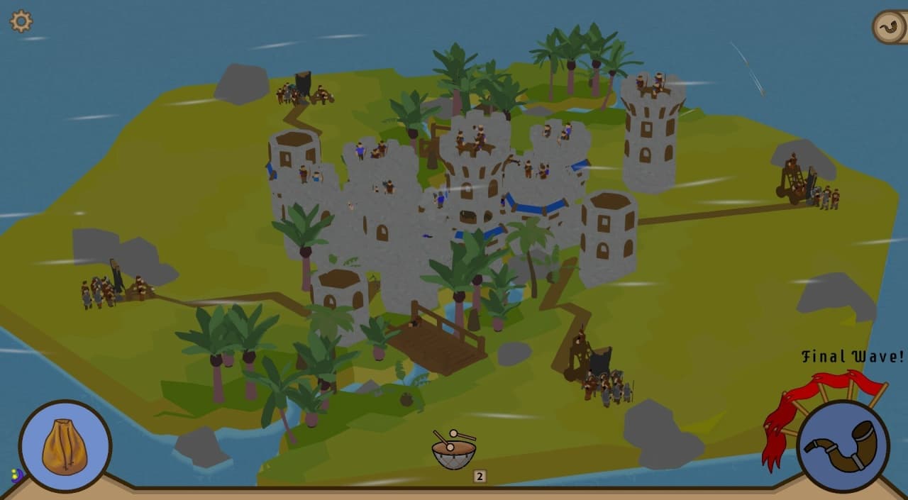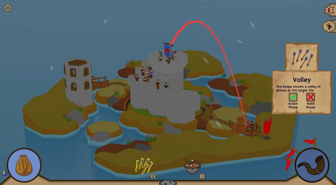 Каждая карта влияет на атаку и уровень урона. Игровая карта разделена на сектора, где вы будете строить свои замки, защищая их от вражеских набегов. Территория варьируется от лесов до гор и равнин, а также включает реки и озера, что придаёт уникальность вашим постройкам. Визуальный стиль выполнен в минималистичном духе, сосредоточенном на блоках построек и ограниченном разнообразии окружающего мира.