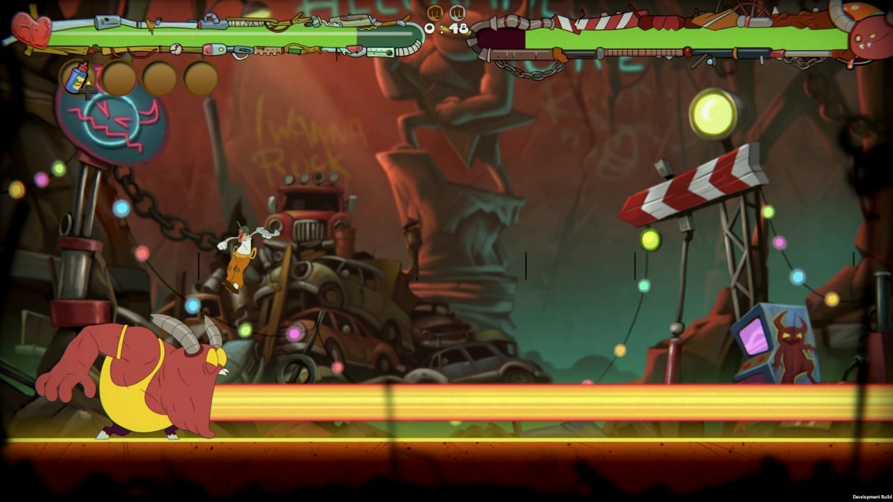 Монстры обладают способностью похищать лица участников, сдирая кожу на глазах. Чтобы вернуть свою внешность, необходимо преодолеть все испытания, подготовленные создателями этого эксцентричного шоу. На каждом уровне вас ждет сложный босс с уникальными паттернами и механиками. В перерывах между сражениями можно насладиться стаканчиком виски в баре, общаясь с мирными персонажами. За комическими моментами и яркими красками скрывается глубокий сюжет, проработанный лор и интересные герои. Но исход шоу зависит только от ваших действий.