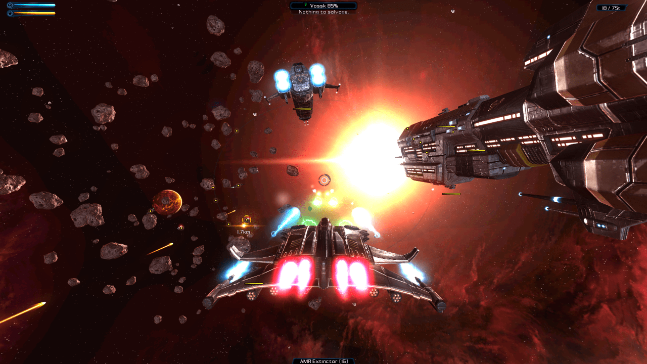 Сюжетная линия длится более 10 часов, включая побочные квесты, возможность зарабатывать на убийствах, торговать, прокачивать свой корабль и искать полезные артефакты на астероидах, разрушая их до основания. Из собранных материалов вы сможете создавать новое снаряжение и орудия, чтобы справляться с угрозами будущего.