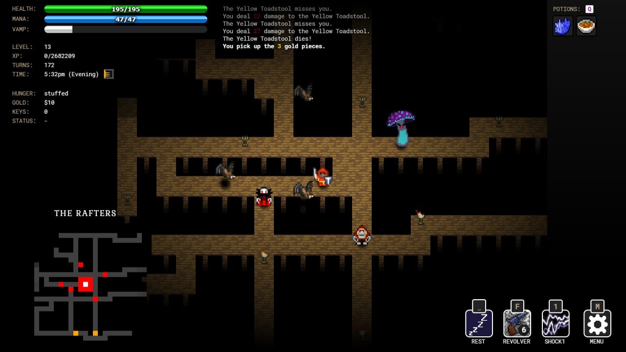 Golden Krone Hotel – ролевое хоррор-приключение с пиксельной графикой и видом сверху, сочетающее пошаговые поединки и элементы рогалика. Проект инди-студии погружает в готический фентезийный мир, пропитанный вампирскими мифами. Чтобы одолеть агрессивных кровопийц, пользователь использует свет. Но есть и другой путь: стать вампиром, что изменит навыки и механику сражений с врагами. Геймер, управляющий с помощью контроллера, получает награды за достижения в ходе игры.