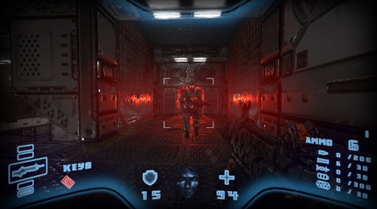 Арсенал главного героя изобилует футуристическими орудиями. Враги разлетаются на части, оставляя за собой лужи крови. Протагонист вооружен гатлингами, плазменными винтовками и мощными гранатометами. Близкий бой не обойдется без кулаков. Как и в классических шутерах, здесь есть две шкалы: брони и здоровья. Для восстановления запасов нужно искать их на уровнях. Кроме этого, доступны вспомогательные виды вооружения: гранаты и мины.