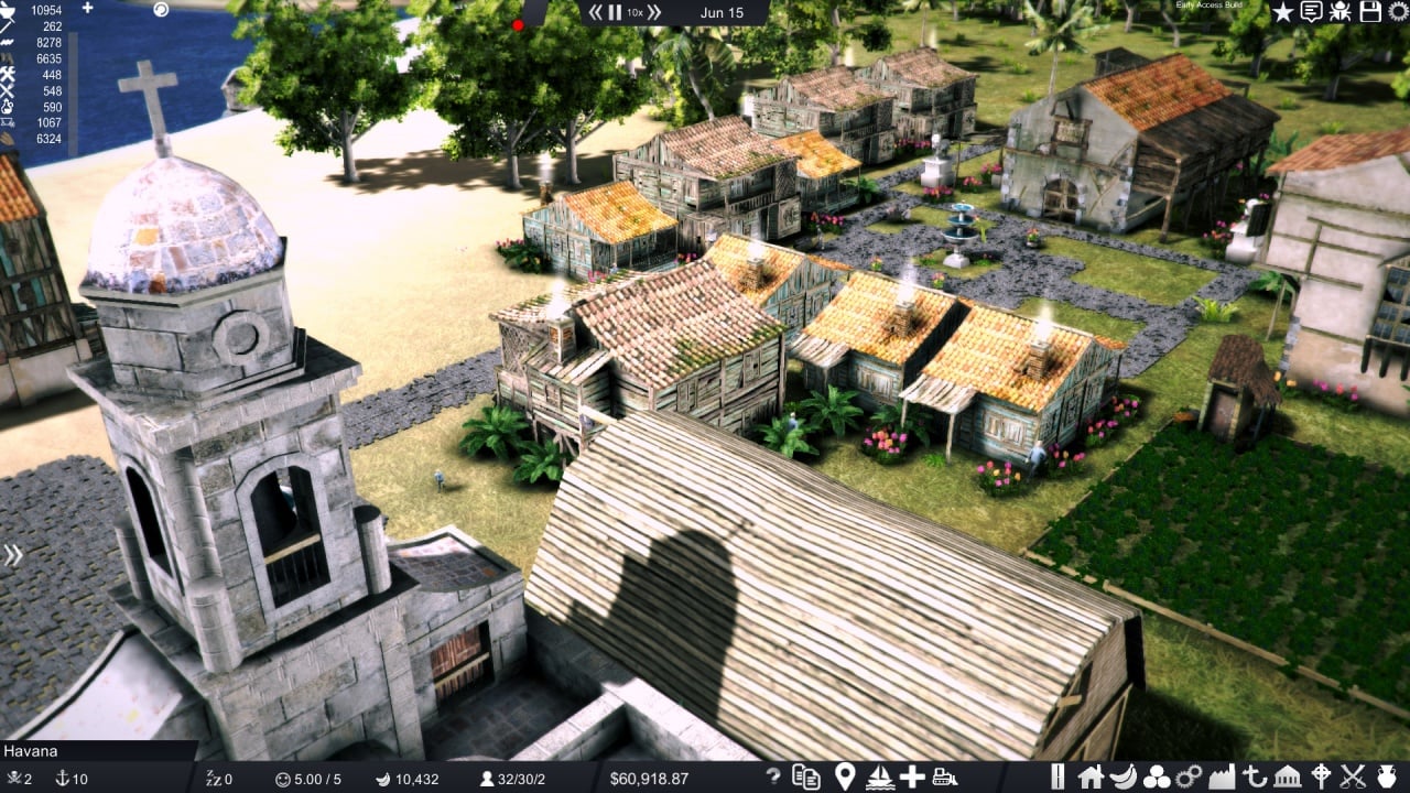 События разворачиваются на Карибах, когда европейцы впервые ступили на неизведанные земли. Геймплей охватывает микроменеджмент, строительство, экономику и торговлю. В начале доступно несколько поселенцев и амбар с припасами. С этими ресурсами вам предстоит найти пути для расширения и процветания. Построив порт, вы получите доступ к параметру "Репутация порта". Этот показатель определяет, как часто торговые корабли будут приходить к вашим берегам для выгодных сделок. Также существует риск "Пиратской угрозы". Корсары могут внезапно напасть и разграбить ваши склады. Особенности игрового процесса: