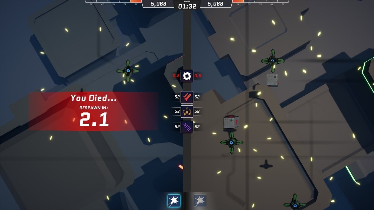 Ключевая особенность Blink: Rogues — постоянный режим сплитскрина. В любой момент вы можете перепрыгнуть на экран соперника, что добавляет динамики и позволяет удивить оппонента. Соревнуйтесь по локальной сети или через интернет. Матчи длятся до пяти минут. За уничтожение врагов начисляются очки, которые можно потратить на прокачку. Карты представляют собой рандомизированные биомы и строения, обеспечивая равные условия для обоих экранов.
