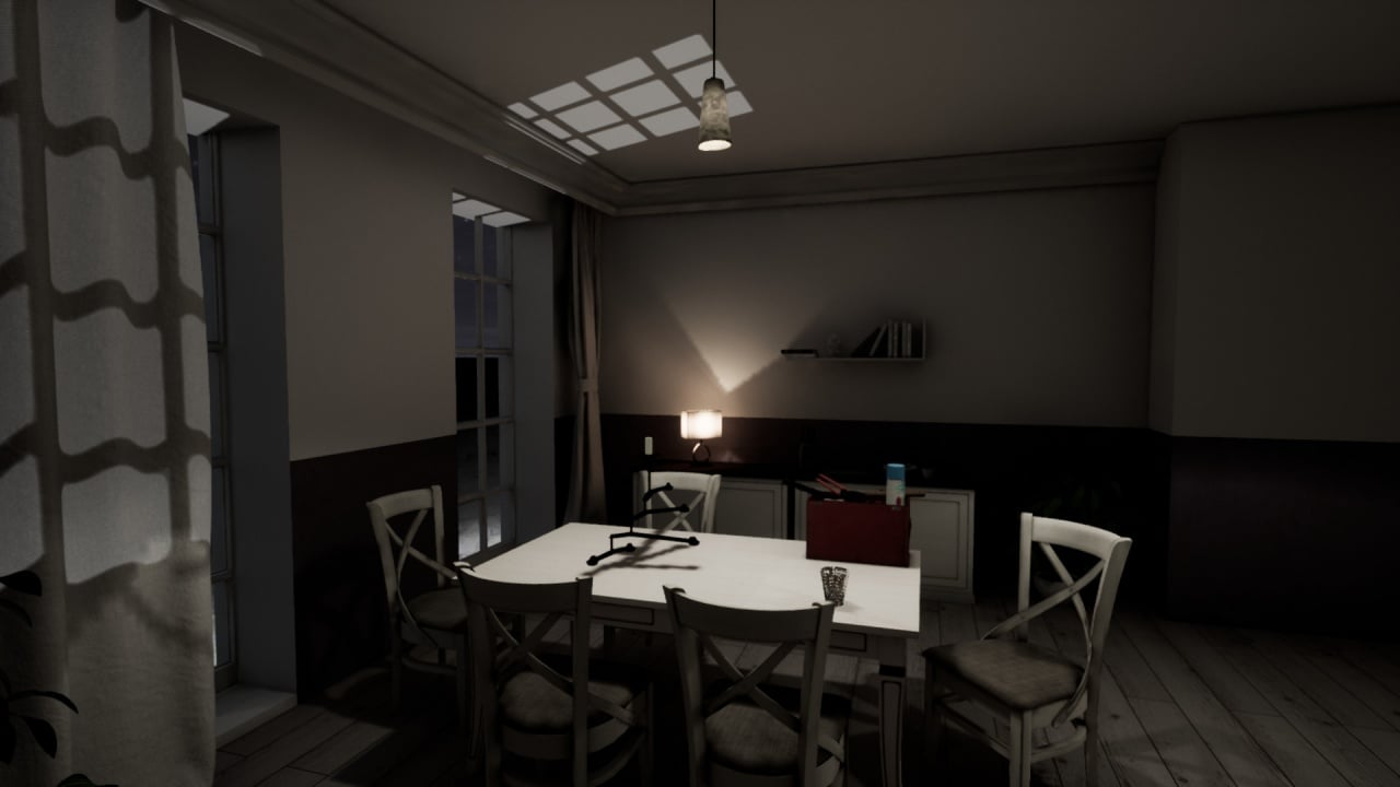 Чтобы сбежать, нужно открыть дверь с магической руной. Однако безымянный протагонист колеблется, утверждая, что ему нужно забрать нечто "самое нужное". Геймеру предстоит разгадать, что именно подразумевает герой. В процессе игрок будет решать головоломки, восстанавливать постоянно отключающееся электричество и избегать встречи с незваным гостем. В этом инди-проекте отсутствует музыка; лишь голоса и звуки создают атмосферу. Уровень их громкости нельзя настроить. Сюжет в начале кажется запутанным, но по мере продвижения открываются новые детали о герое и его преследователе. Проект состоит из четырёх уровней.