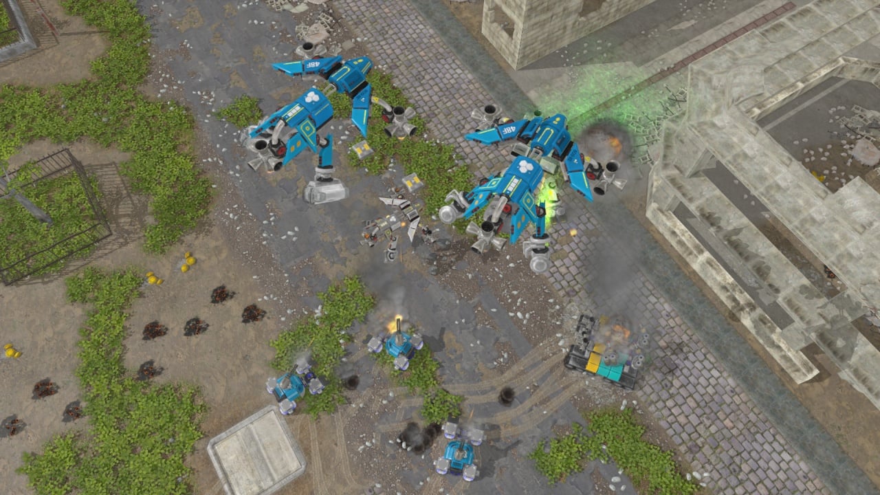 Пользователь управляет заводом по производству механических солдат. Этот элемент позволяет оптимизировать процесс формирования армии. Можно выбирать тип сборки, что влияет на время появления юнита. В проекте присутствует одиночная кампания, сражения с немного нечестным ИИ и дуэли с реальными соперниками как по локальной сети, так и в онлайн-режиме. Карты обширные, а машины быстро перемещаются по локациям. Тем не менее, роботы часто испытывают трудности с навигацией и могут застревать на пути к цели.