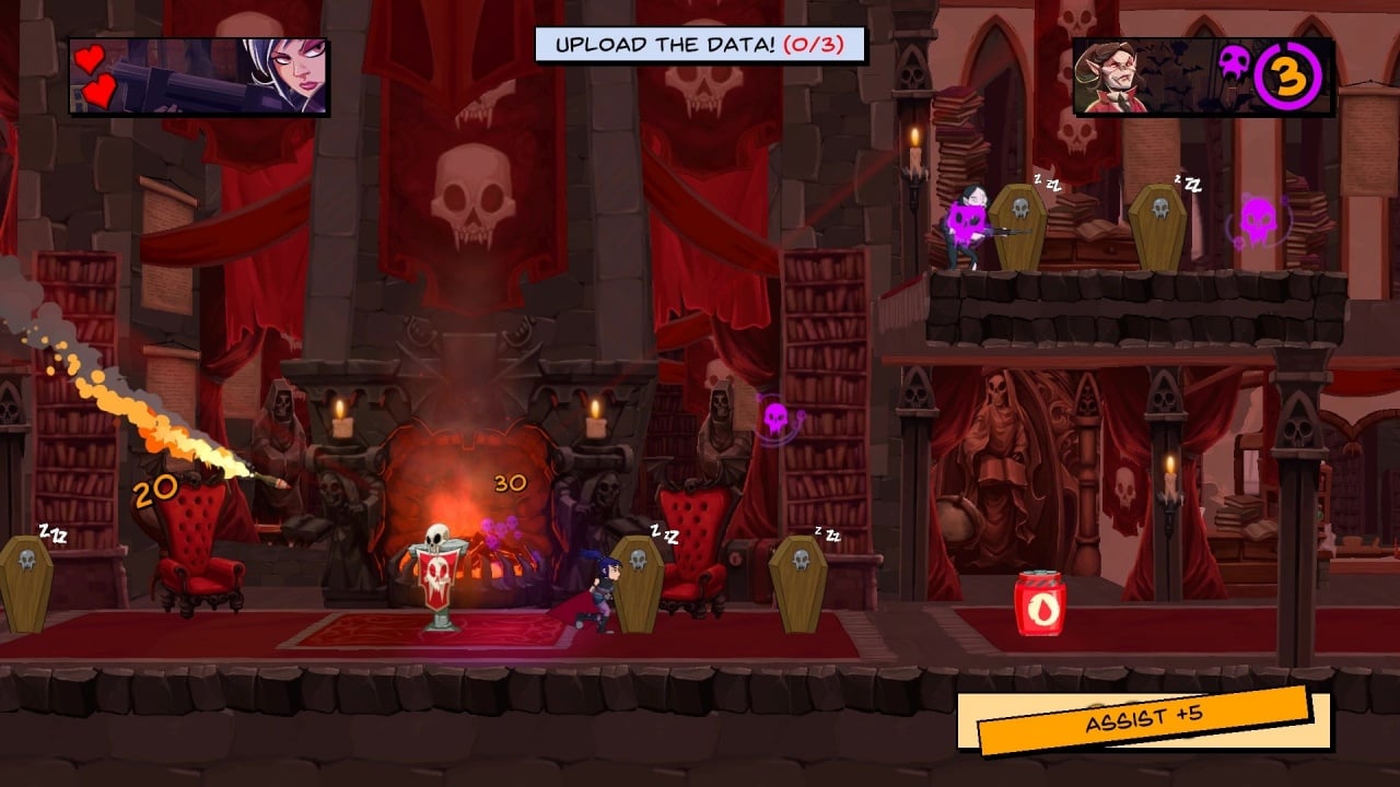 Damsel – экшен-платформер, в котором пользователю предстоит много стрелять, выполнять сложные прыжки через громадные пропасти и решать пространственные головоломки для продвижения по сюжету. Стилистически проект от инди-разработчиков выполнен в виде оживших страничек комиксов, в которых царят вампиры. Главная героиня – девушка по имени Дамзель, работающая специальным агентом по истреблению нечисти. В руках хрупкой, но боевитой женщины оказывается судьба всех живых существ, атакованных кровопийцами, стремящимися установить свои порядки.