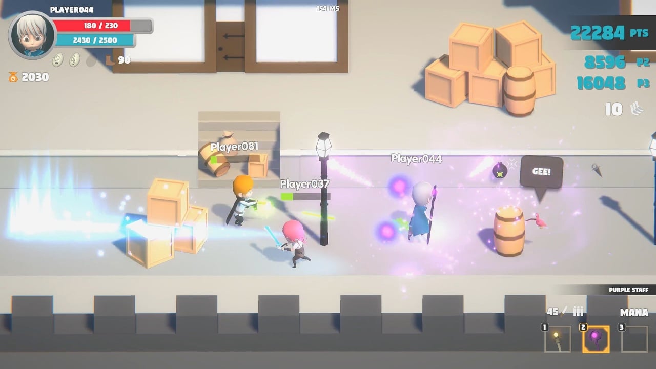 Задача пользователей – выжить как можно дольше, уничтожая волны агрессивных противников, которые бесконечно атакуют героев со всех сторон экрана. На одном сервере может находиться до 4 человек. По итогам битвы каждый участник получает индивидуальный результат, который публикуется в таблице лидеров для выявления самого успешного истребителя безумных птиц.