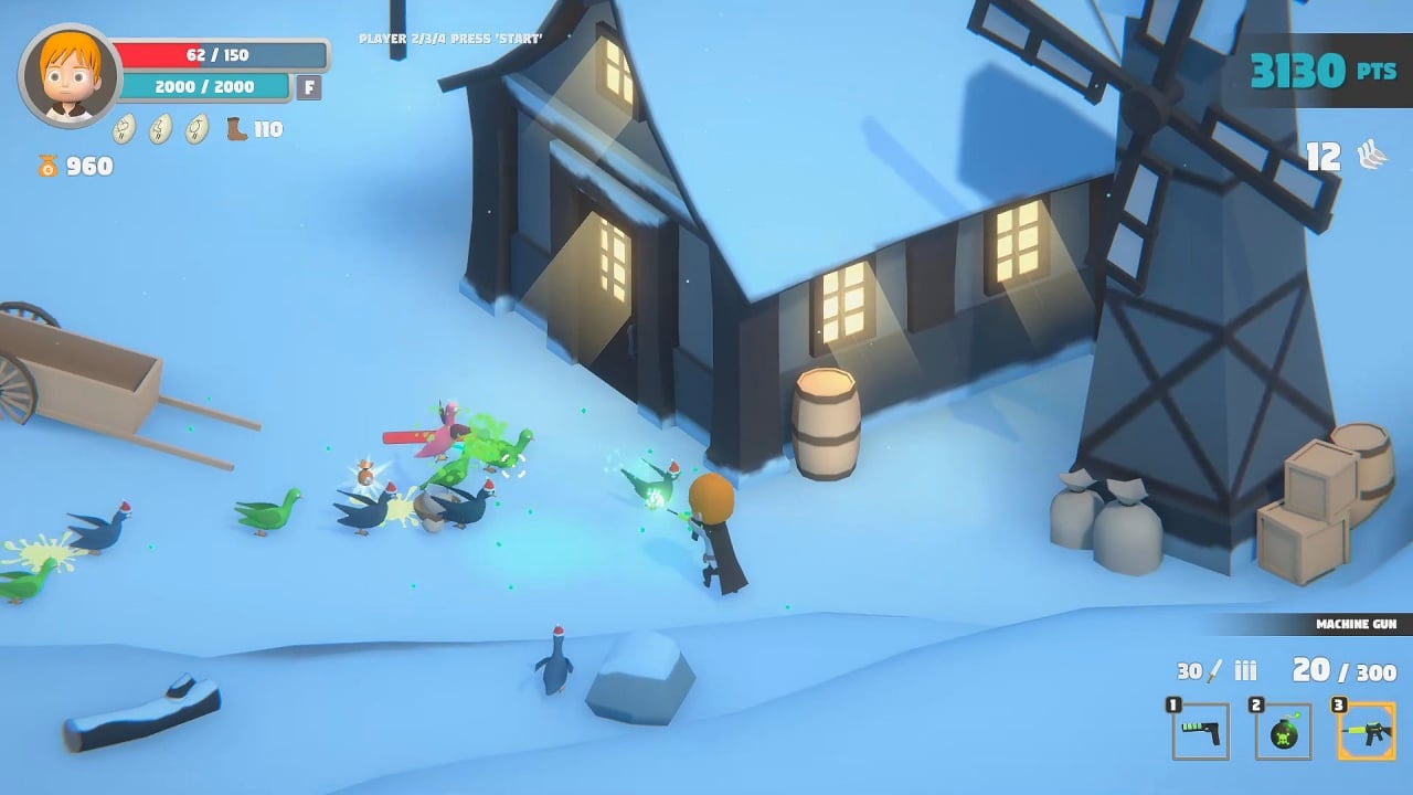 Пользователям доступны 3 персонажа с уникальными наборами способностей. Комбинирование сильных сторон каждого протагониста нивелирует их слабости и создаёт преимущества над ИИ. Голуби также классифицируются по типам. Уничтожая одну волну за другой, геймеры накапливают выпадаемые бонусы с тел поверженных врагов, получая усиления для некоторых навыков, оружия и дополнительные патроны. Каждый пользователь сможет найти то вооружение, которое лучше всего соответствует его стилю игры, что положительно скажется на итоговых результатах.
