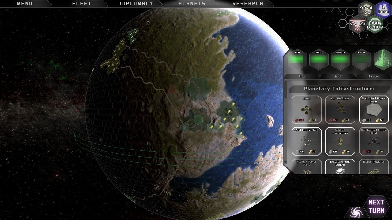 Вселенная полна разнообразных планет. Галактика и все её объекты генерируются случайным образом. Карта разбита на гексы, на которых строятся различные сооружения и города. На одной планете можно возвести до четырех мегаполисов. Каждый город включает шесть видов построек: шахты, фермы, станции, археологические раскопки и т.д. Играбельные расы представлены фракциями людей, рептилоидов, разумных акул и котов. Каждая фракция обладает уникальными характеристиками и особенностями, влияющими на игровой процесс.