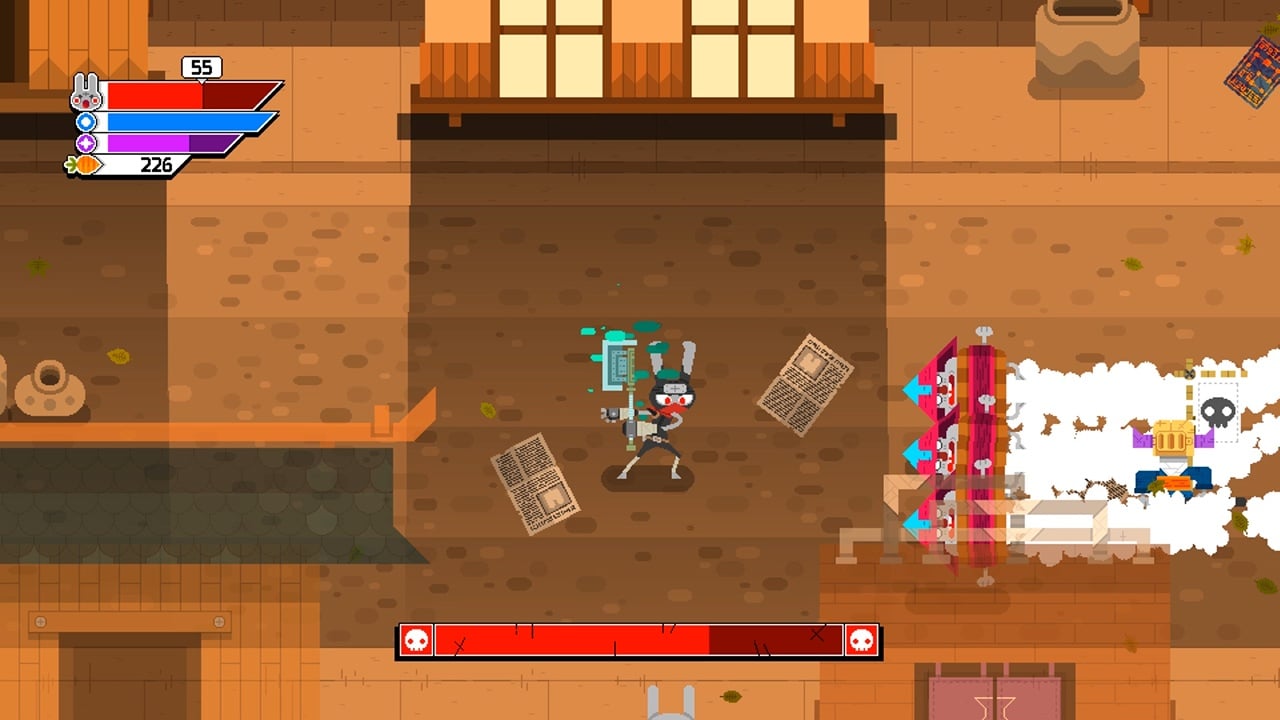 Персонажей можно менять в любой момент. Каждый герой обладает уникальными движениями и способностями. Собирайте морковь и тратьте её на вспомогательное снаряжение в магазине Корги или на оружие и маски в Тайной лавке. Объединяйтесь с другом в кооперативе, доступном как локально, так и по сети. Арсенал включает 150 различных пушек, снарядов и улучшений. Множество предметов для кастомизации героев и разнообразные локации ждут своих искателей.