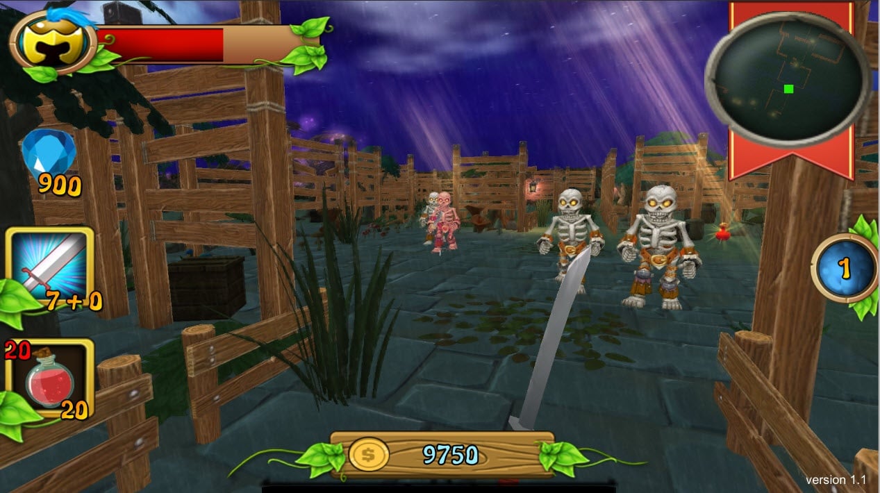 Схватки с скелетами, оборотнями, зомби и другими существами чаще всего происходят под открытым небом. Ближний бой – единственная доступная форма сражений. Восстановить здоровье можно с помощью бутылок с красной жидкостью. Традиционной прокачки не предусмотрено: пользователь усиливает персонажа, собирая разбросанные по коридорам усиления и покупая более мощные мечи за найденные монетки и кристаллы. Всего доступно 6 разновидностей оружия, каждая с уникальным дизайном и уроном. Однако стоит отметить, что проект имеет свои недочеты. Иногда персонаж может проходить сквозь стены, а убитые враги не исчезают и продолжают вести себя как живые.