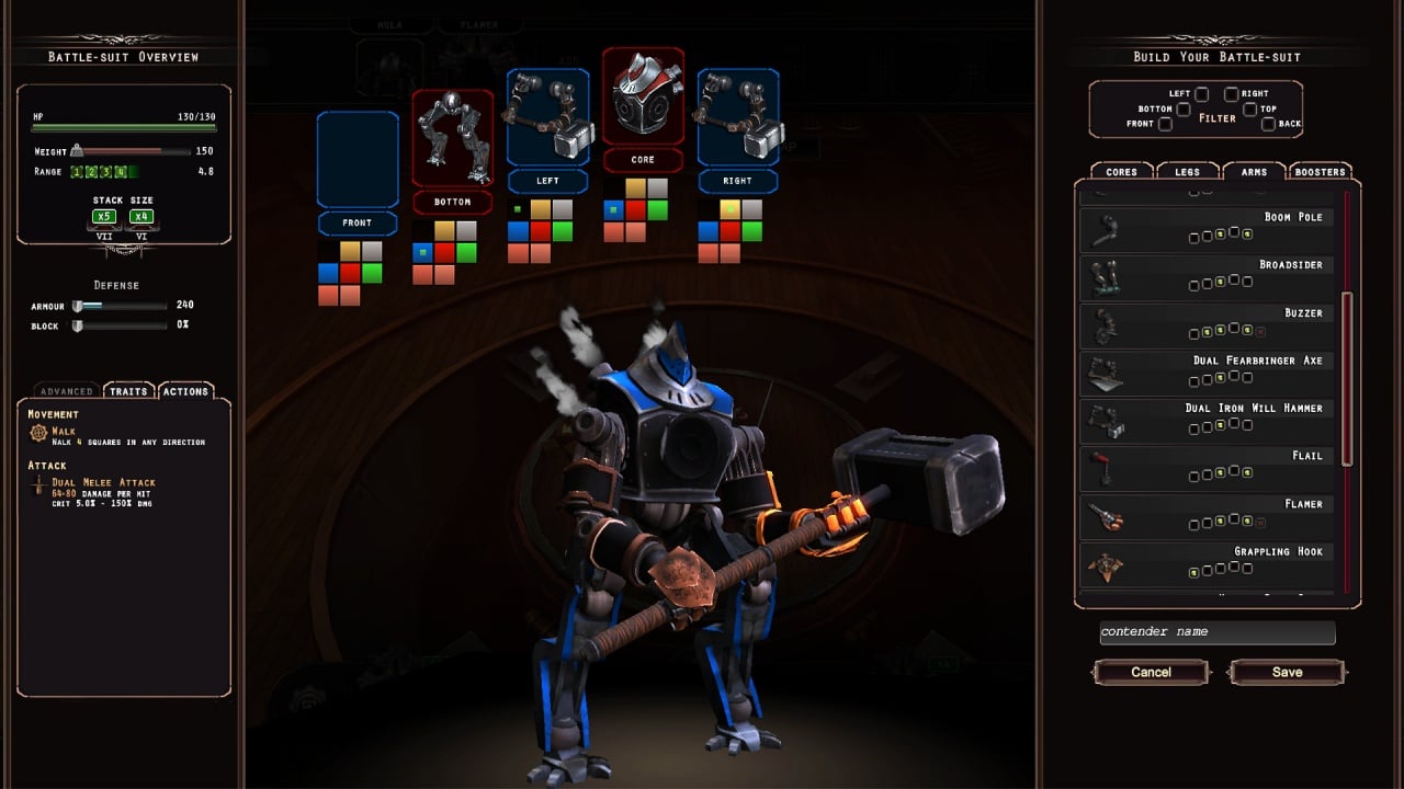 Проект выполнен в жанре пошаговых ролевых игр, дополненный элементами рогаликов и коллекционных карточных игр. Пользователь управляет боевым мехом, модифицируя его части — конечности, кабины и оружие. Например, одну руку можно оснастить пушкой, а другую — щитом. Все детали доступны в магазинах, в качестве награды или выпадают из поверженных врагов.